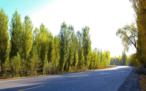 2,新疆楊,(拉丁文:Populus alba var. pyramidalis Bunge )是楊柳科屬下的銀白楊在中國南疆盆地的變種,為高15-30米的喬木植物。樹冠窄圓柱形或尖塔形,樹皮灰白或青灰色,光滑少裂,僅見雄株。主要分布于中亞、西亞、歐洲巴爾干地區、中國北方。新疆楊主要以播種和扦插繁殖盡心繁殖,生長緩慢,耐修剪,對有毒氣體抗性強,也是城市綠化或道路兩旁栽植的樹種。